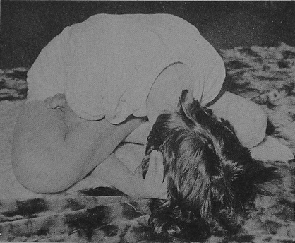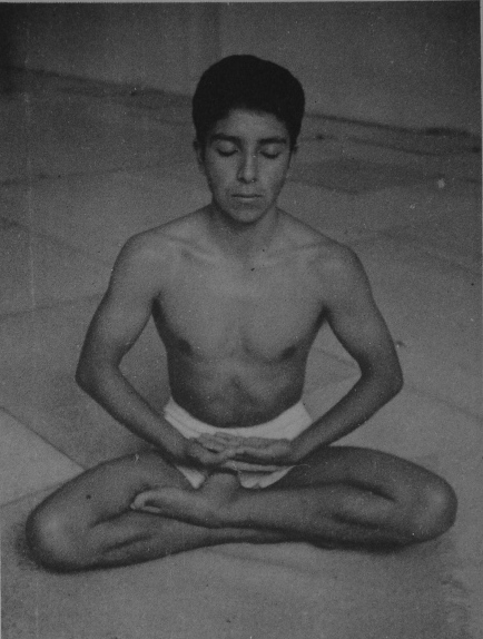 116Se trata de la baddhayoniasana mostrada en la lámina V con la diferencia de estar en posición de siddhasana en vez de estar en vajra, en lo que concierne a la postura de las piernas.